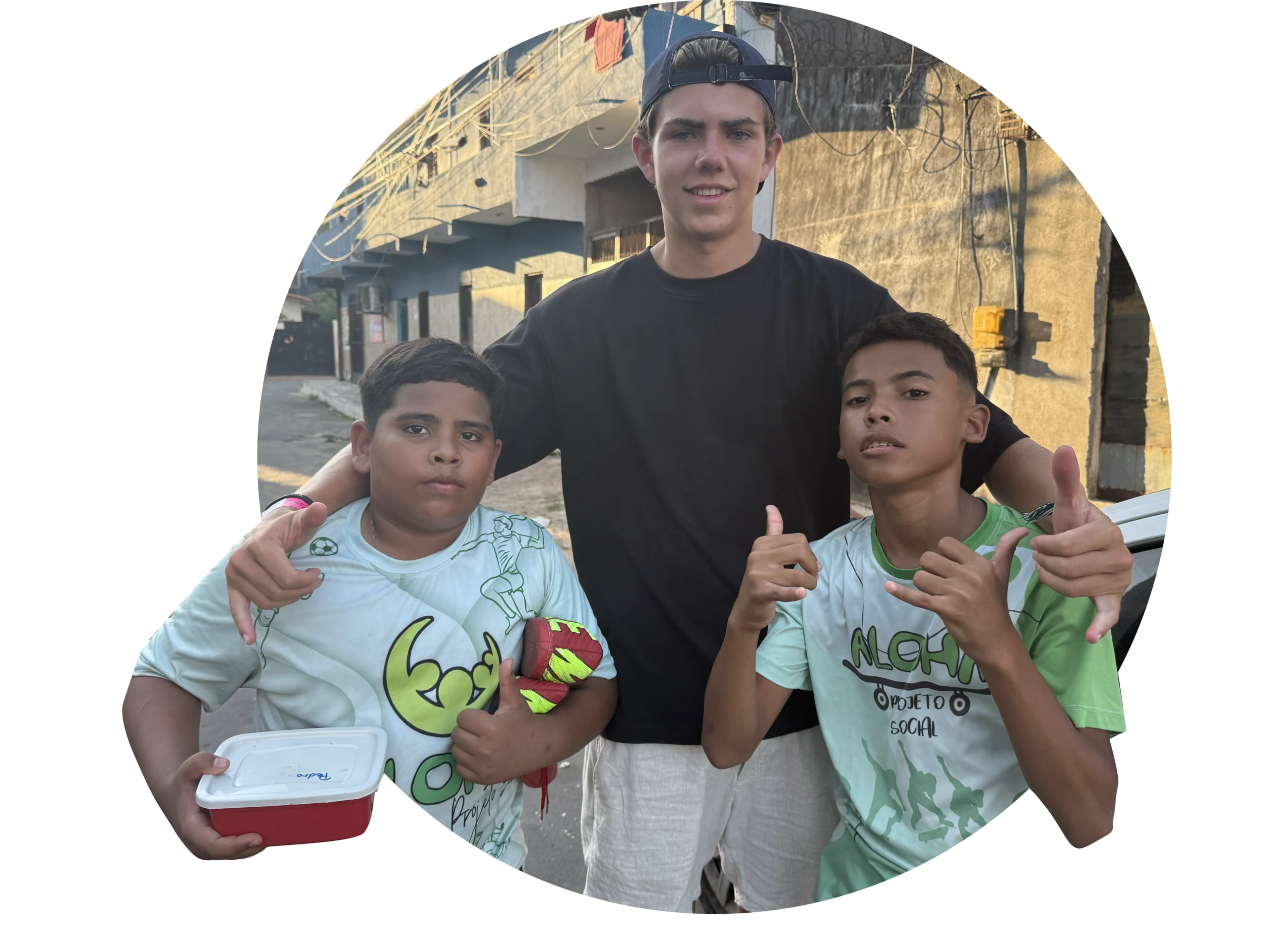 Een logische vraag. We slapen in Cumbuco, een toeristisch dorpje op 25 km afstand. Binnen de sloppenwijk Barra do Ceará kent iedereen Aloha: de bewoners, de politie en zelfs de gangs. Zolang je niets met drugs doet, laten de gangs en de politie je met rust; zij steunen ons werk voor de kinderen juist. Er gelden in de wijk sterke regels, zoals niet stelen, waardoor er nog nooit iets raars is gebeurd. Onze regel: we zijn er niet ná 20:00 uur en blijven binnen de wijk waar iedereen ons kent.