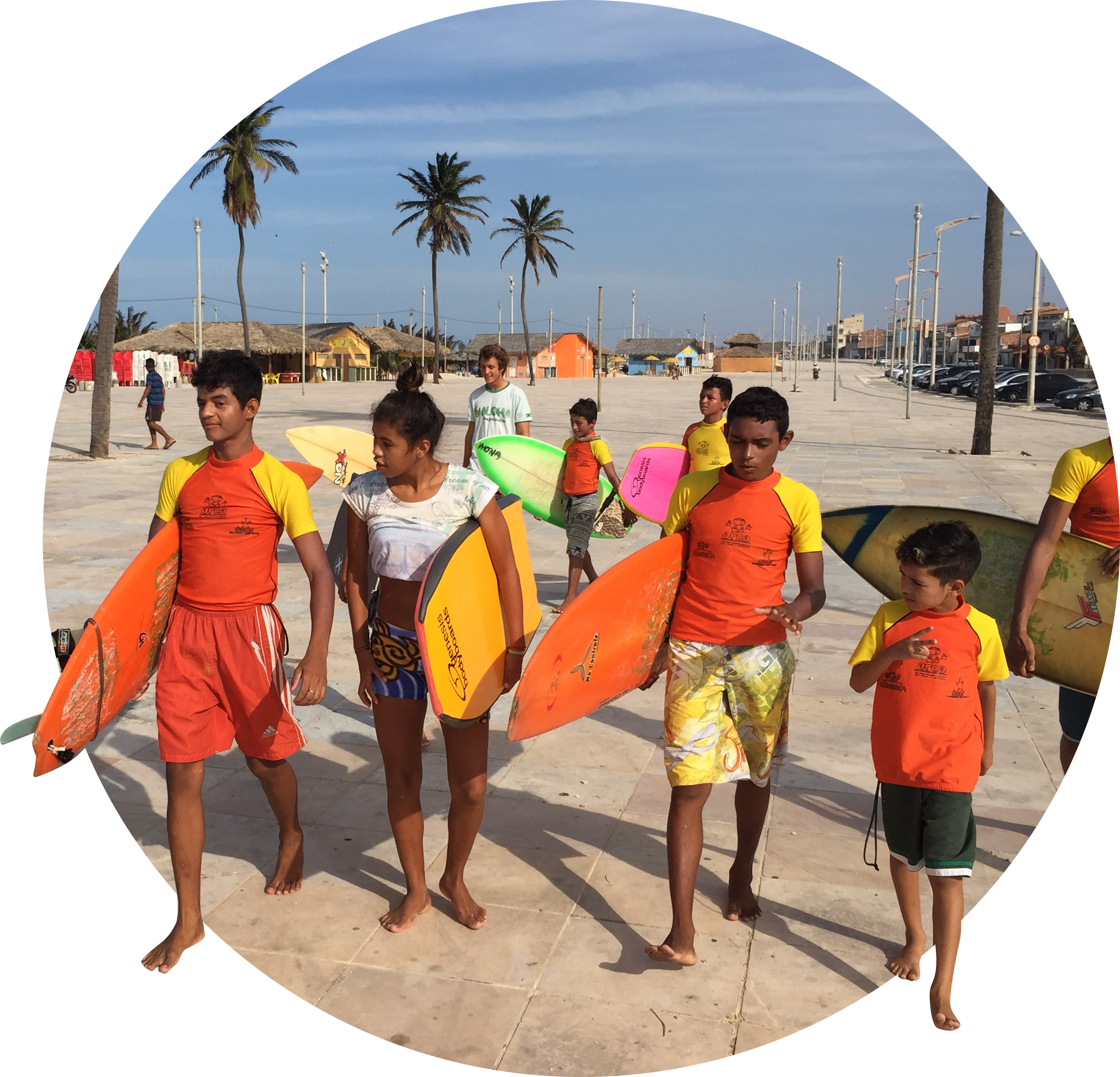 Wilkison en Valber zijn leerlingen bij een surfproject in de wijk Barra do Ceará in Fortaleza in Noordoost Brazilië waar ze goed Engels én surfen leren.